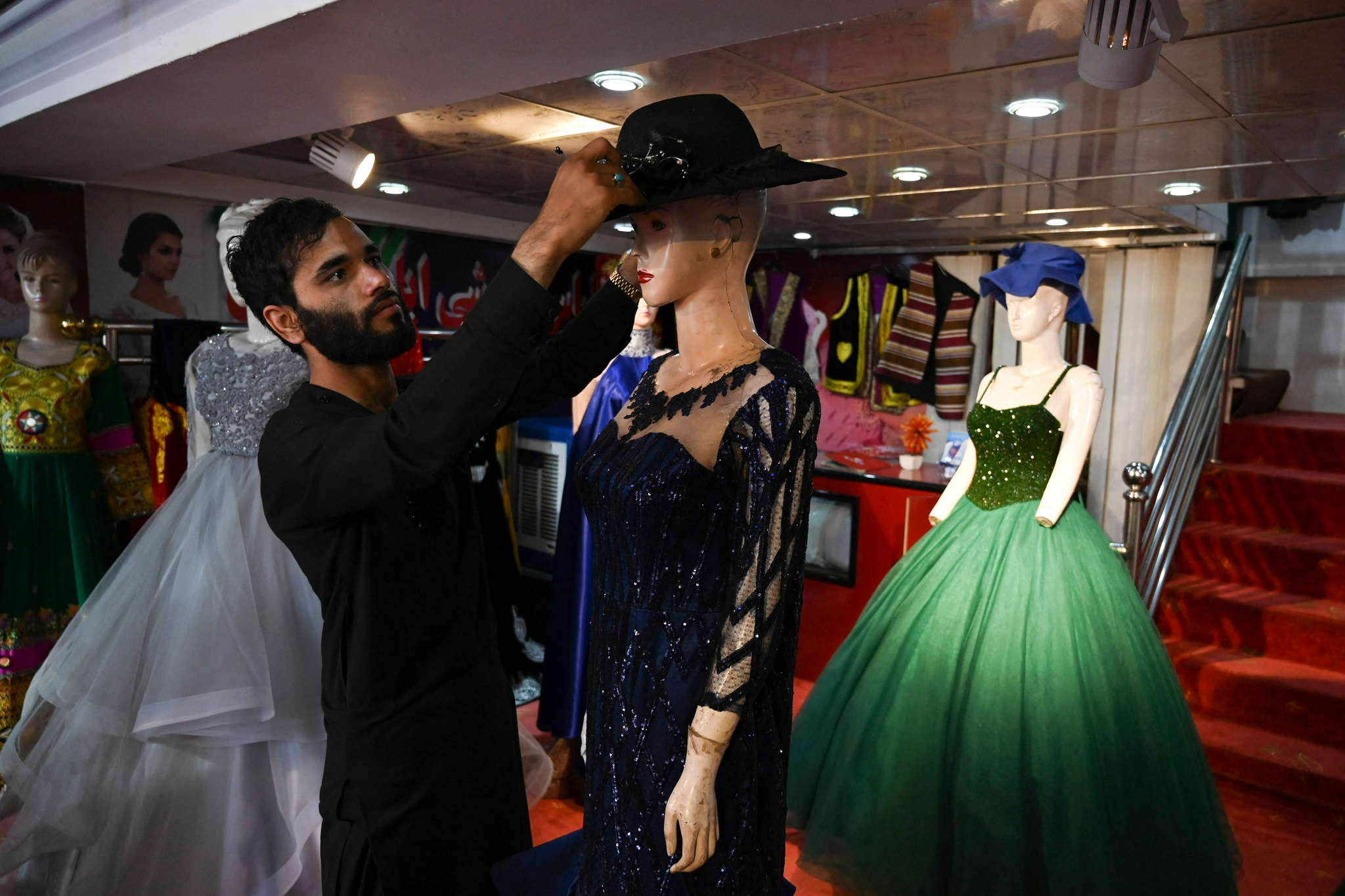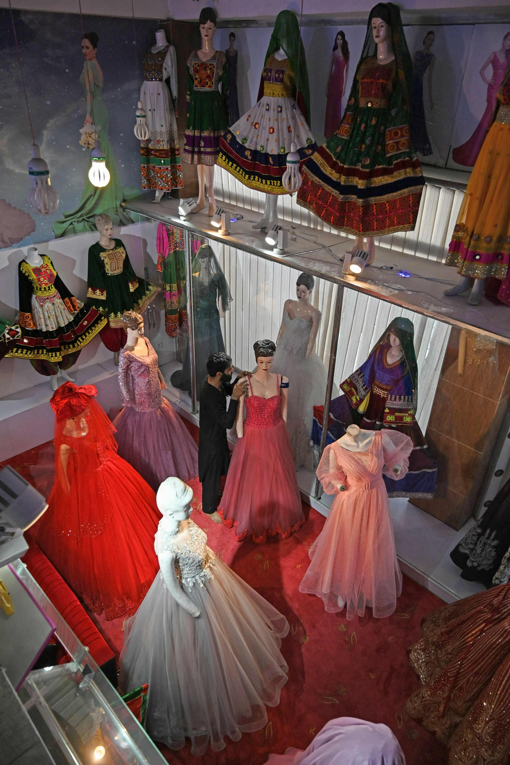 9月2日,工作人员在阿富汗首都喀布尔一个婚纱店中忙碌。新华社/法新