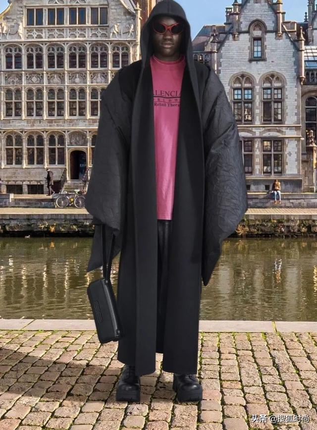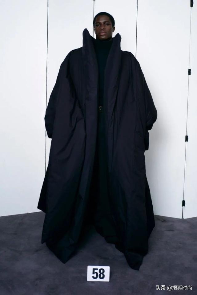 其中,可以被当作被子的黑色超长大衣,来自BALENCIAGA 21秋季高定系列。