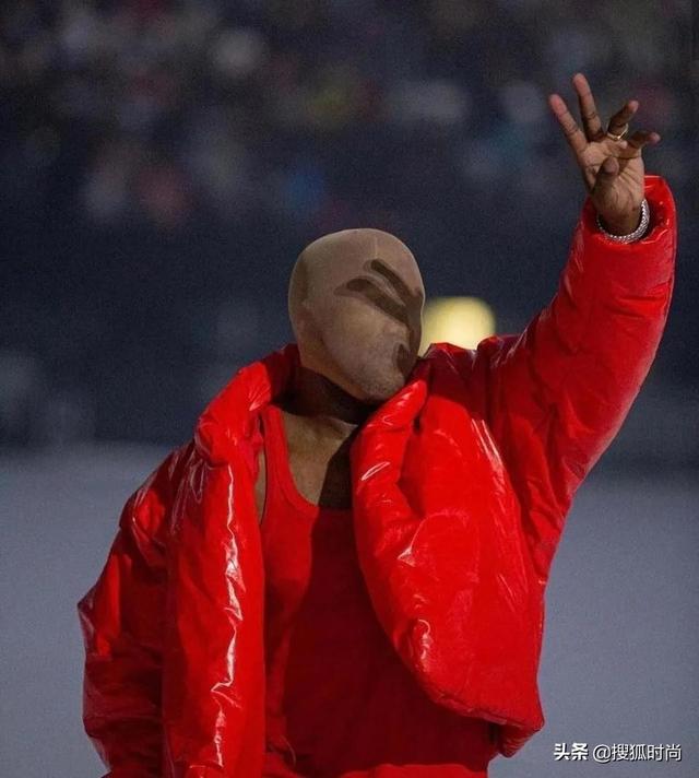 身上穿的衣服来自与GAP联名的YZY全新红色版本ROUND JACKET, 采用再生尼龙材质打造,表面采用哑光PU涂层。