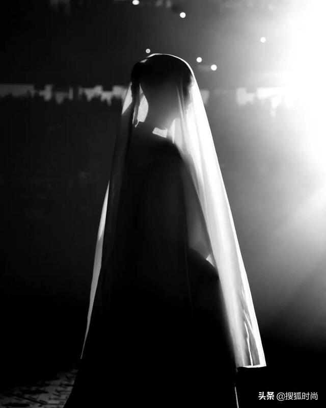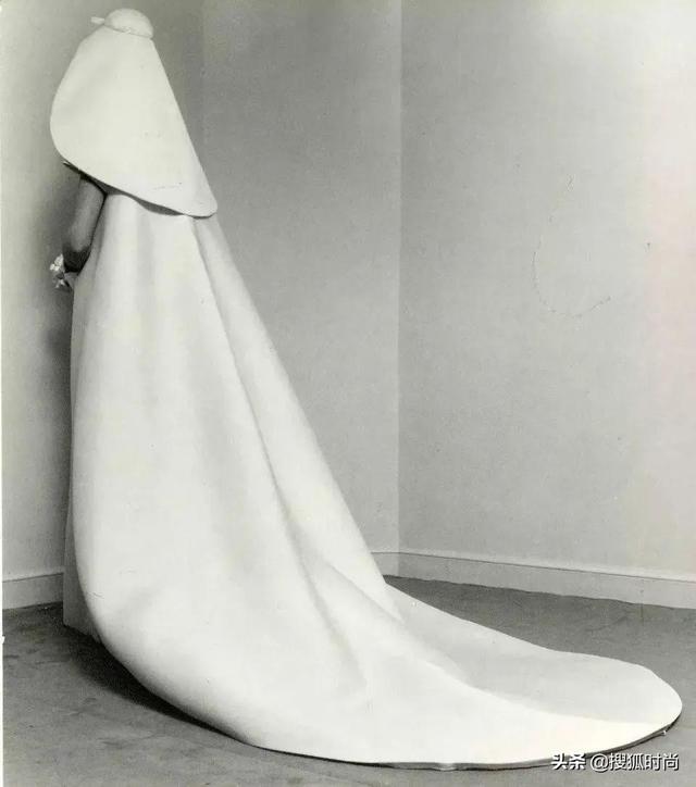 婚纱致敬了Balenciaga先生在1968年关停高定线时最后的作品,这件婚纱的特别之处就在于整件婚纱是一整块布,而且就用了三处缝合线。