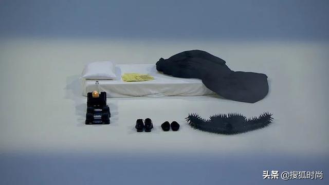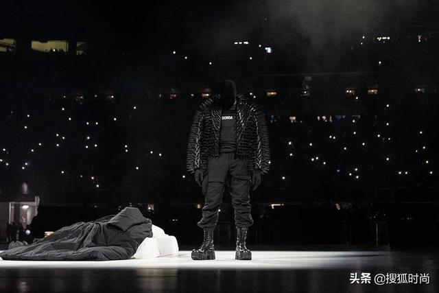 这次,侃爷在舞台中央摆放了一张床垫,平铺了两件外套和两双鞋,旁边还放了黑色的健身器材,上面点了一根蜡烛。