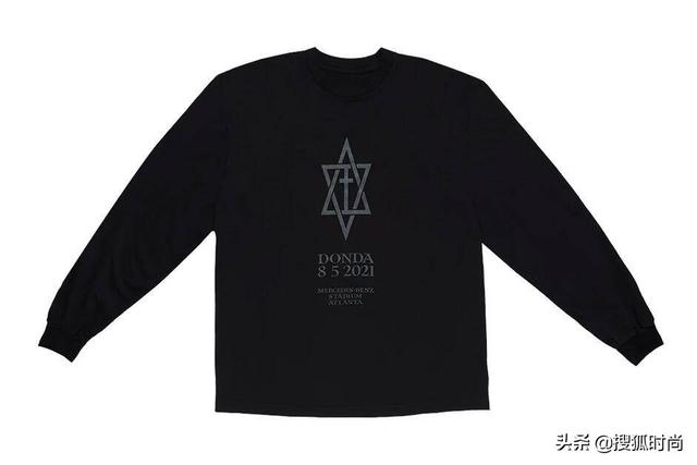 这件售价$100美金的黑色长袖T-shirt率先发售,图案以犹太教的大卫之星作为灵感主题,并在正中加入十字架,下方印有专辑名称、日期与场馆名称,彰显纪念意义,一经发布就被抢疯了。