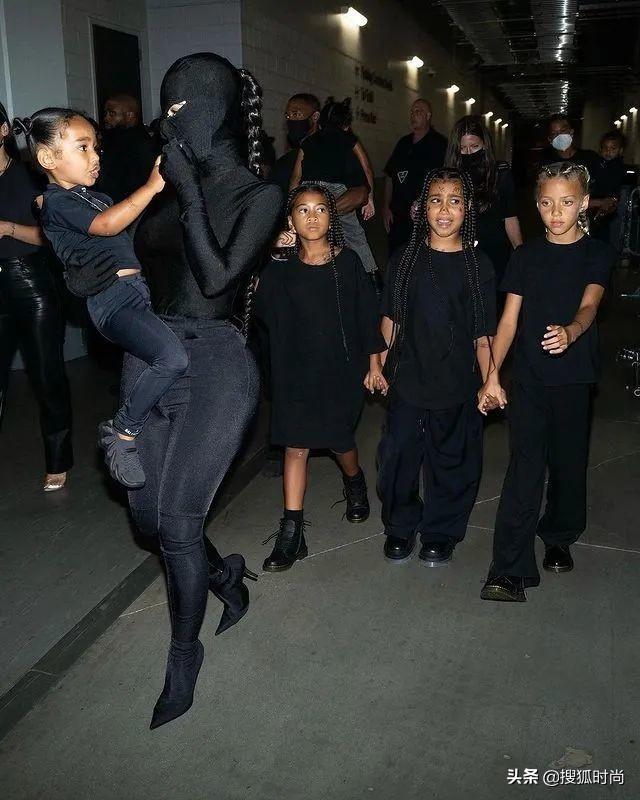 第二场试听会侃爷的前妻金·卡戴珊也去了,戴了侃爷的同款黑色头套。