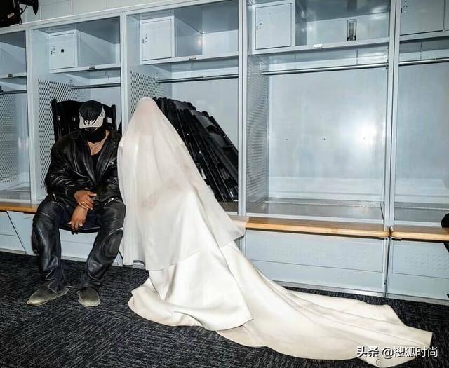 金·卡戴珊的这件白婚纱是BALENCIAGA21秋季高定系列秀的压轴作品。