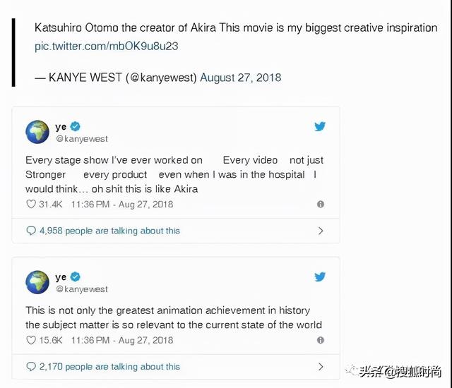 侃爷也是这部动漫的头号粉丝,曾在Twitter说:“这部电影是我最大的灵感来源。”