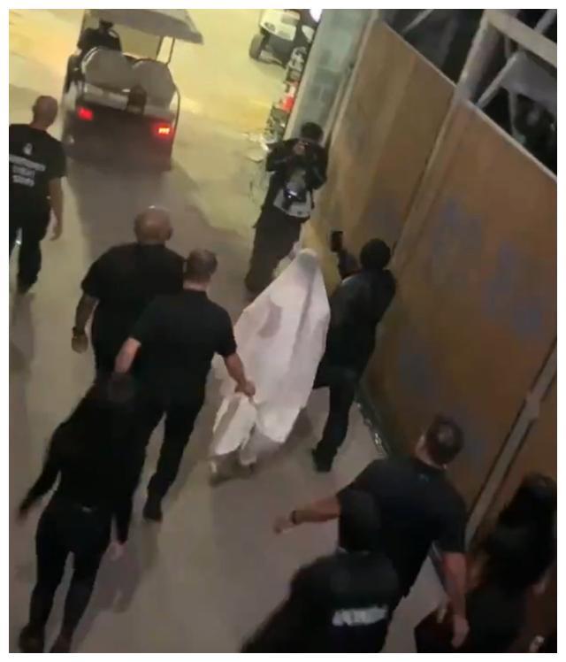 表演完毕后,侃爷还亲自接送金·卡戴珊离去。暖心的侃爷担忧婚纱衣摆会将金绊倒,因此手挽手亲自将她送至车里,以确定其安全离去。