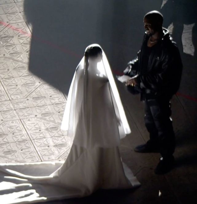 坎爷的这场演唱会整体的氛围不是很明亮,这就让金姐的这身造型更加具有神秘浪漫的感觉了。金卡戴珊之前结婚两次,穿过两次婚纱,而这次再次穿上婚纱,难道是重温当年恩爱的感觉?