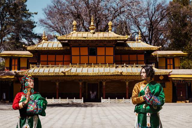 拍摄搭配:本土特色的羊皮袄,大长褂,以及那色彩斑斓的法式。都和色彩丰富的街道相得益彰,来到西藏,怎么也要做一回西藏的美丽卓玛,才不枉此行。