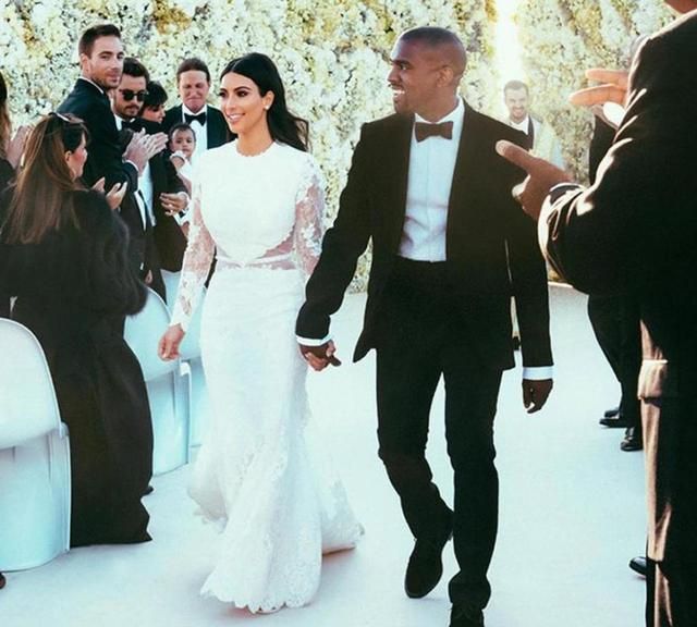 还记得两人结婚时,金·卡戴珊选择的婚纱款式,带了些女人味的浪漫,轻盈的鱼尾蕾丝复古华丽,从袖口到腰间的透薄法式刺绣蕾丝,形成了层次感。行走间摇曳生姿的感觉,这种温柔甜美的气息,从裙身上散发出来。