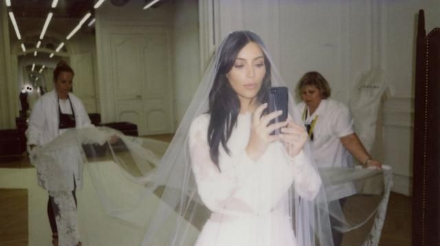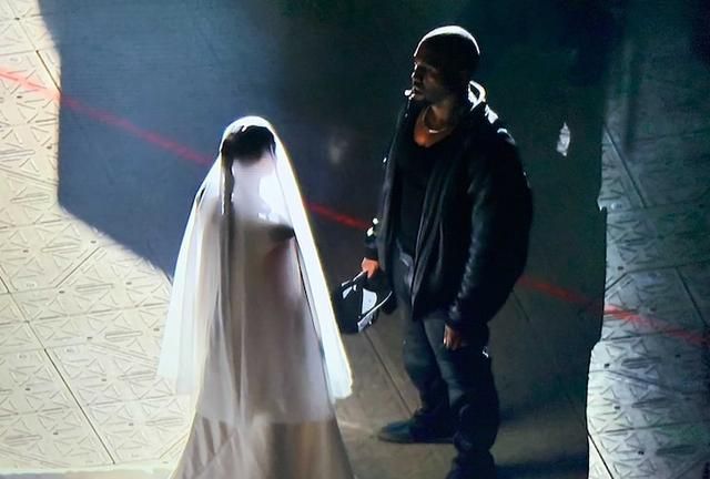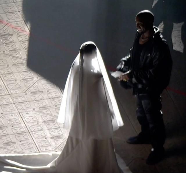 其实不难发现,坎爷对Kim还是有感情的,当看见穿着拖尾白婚纱的金·卡戴珊,他的脑海里一定浮现出了当初两人结婚时的景象。