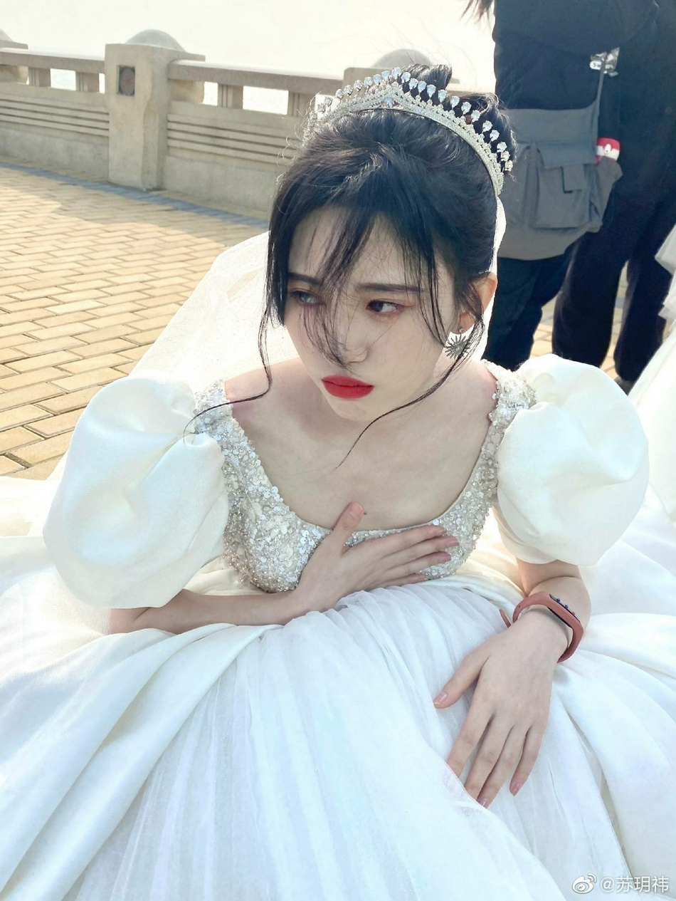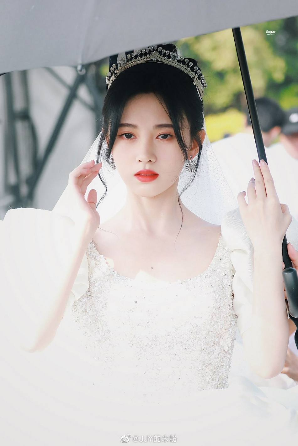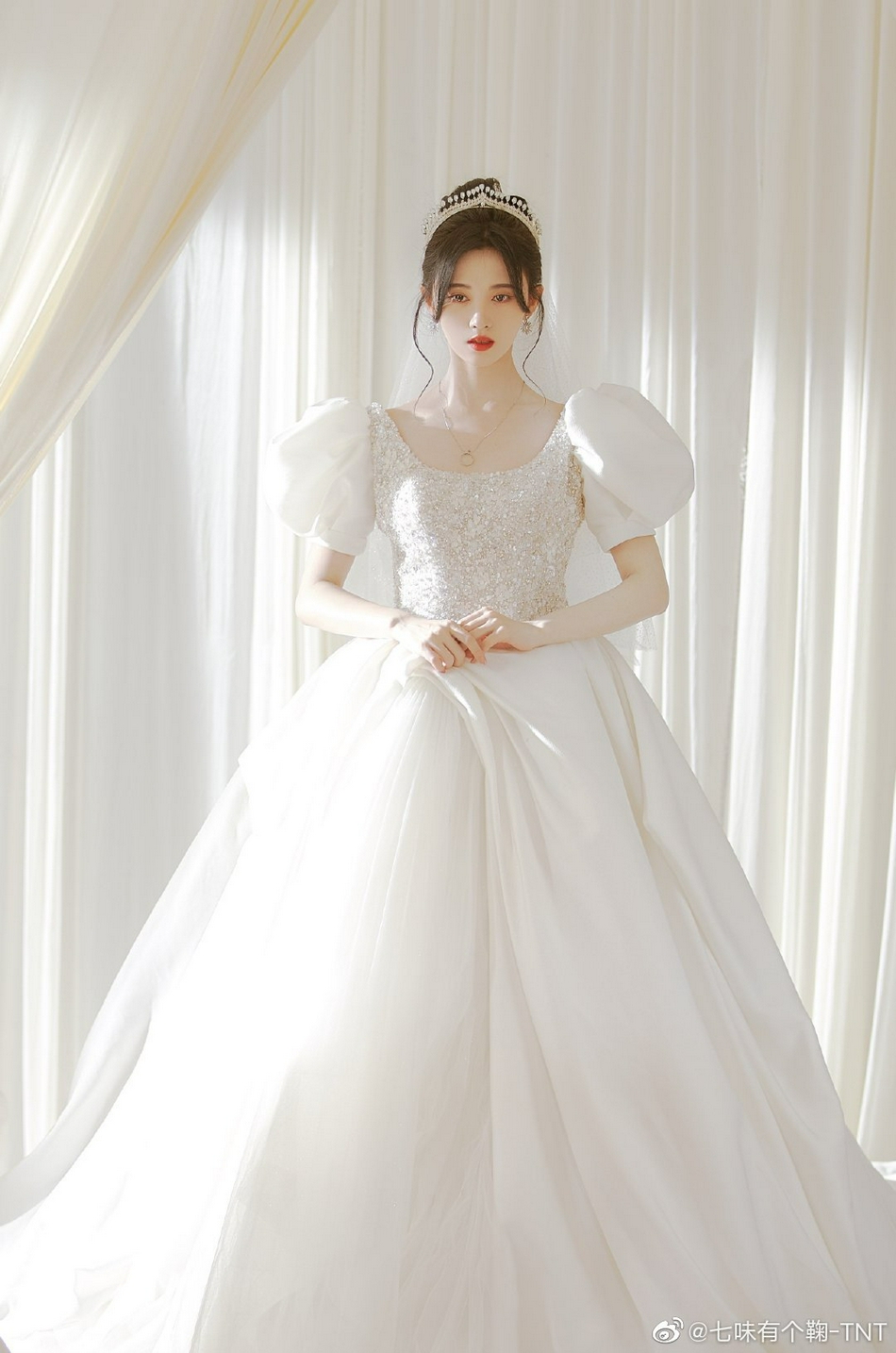 8月25日,鞠婧祎工作室曝光婚纱造型花絮照,照片中她身穿泡泡袖婚纱,侧对镜头优雅捂胸,妩媚迷人。