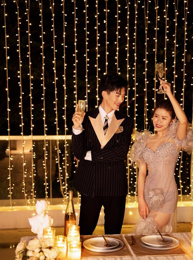 婚纱照斑斓温暖的夜幕星光,被两人间的浪漫晕染得格外迷人。