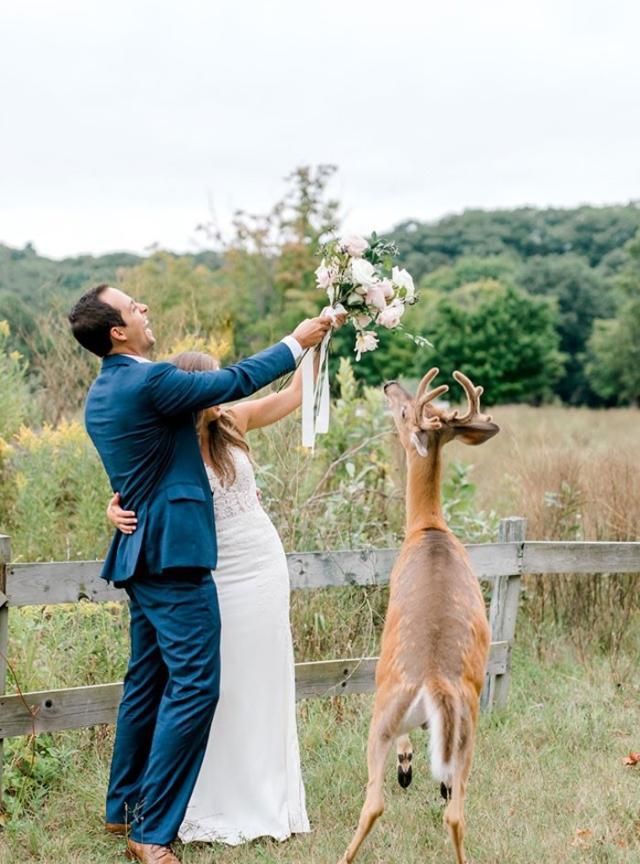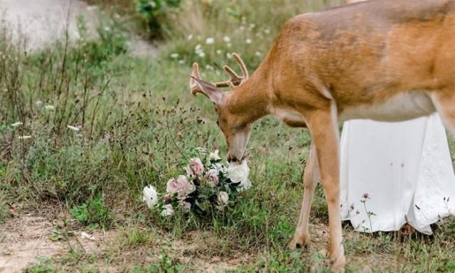 整个过程大约持续了15分钟,摄影师调侃自己说,小鹿留下的玫瑰花难道是给单身的他?他雀跃地表示到,这是他今年拍过最棒的一组婚礼现场照片了!