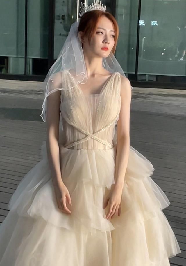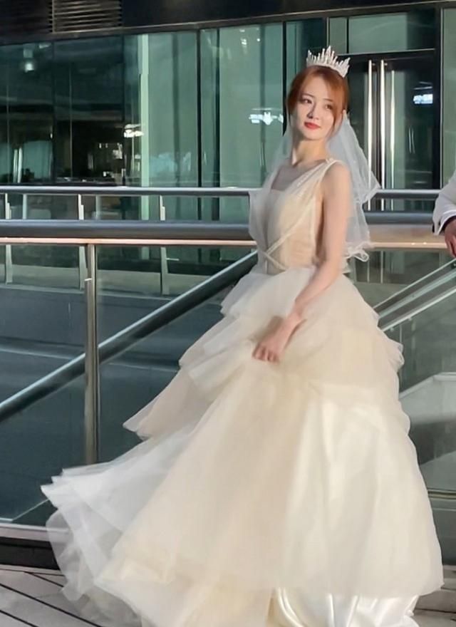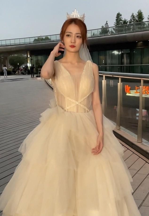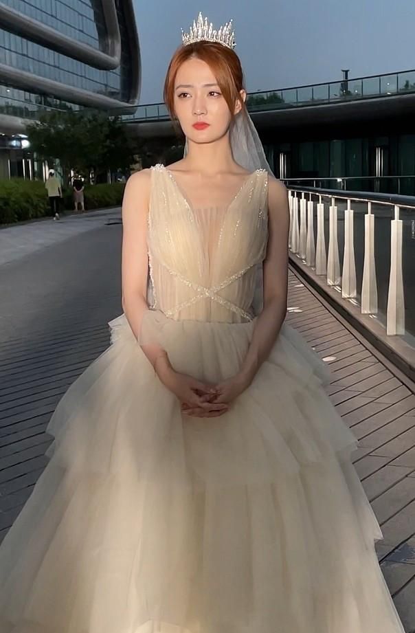 徐璐胆子还挺大的,居然直接穿着婚纱出门,头戴皇冠像极了公主,徐璐的身材很苗条,自身的气质也非常好,穿上白色的纱裙显得精致又少女,而且徐璐自身的年龄也正值青春,穿着白纱裙展现出来的梦幻气息相对也会更加浓郁一些。