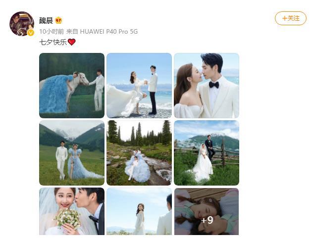 七夕的第一波狗粮来了!零点一过,魏晨在微博晒出婚纱照庆祝七夕,照片中二人相互依偎,幸福甜蜜,十分般配。