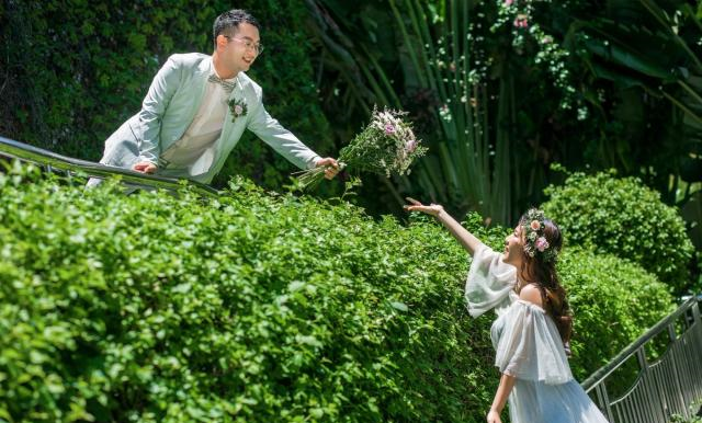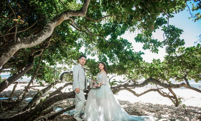 福州克洛伊一站式婚礼,除了在 福州 , 厦门 , 大理 , 丽江 等有分店, 三亚 也是有的,所以只要带着自己来就可以,其他摄影师,化妆师,婚纱以及租车都全部交给他们搞定,不用太操心,省了很多事。而且这次给我们拍照的摄影师,很幽默,本来我是笑得比较僵的,幸好幽默诙谐的摄影师,所以我们全程拍的都很开心。