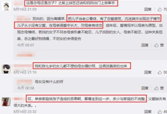 继霍尊退圈后,跟妈妈一起拍摄的婚纱照流出。从晒出的婚纱照看,仲小萍的拍照姿态,完全就像是霍尊的老婆。母子之间拍摄者这样的照片,多少让人觉得有一些不舒服。