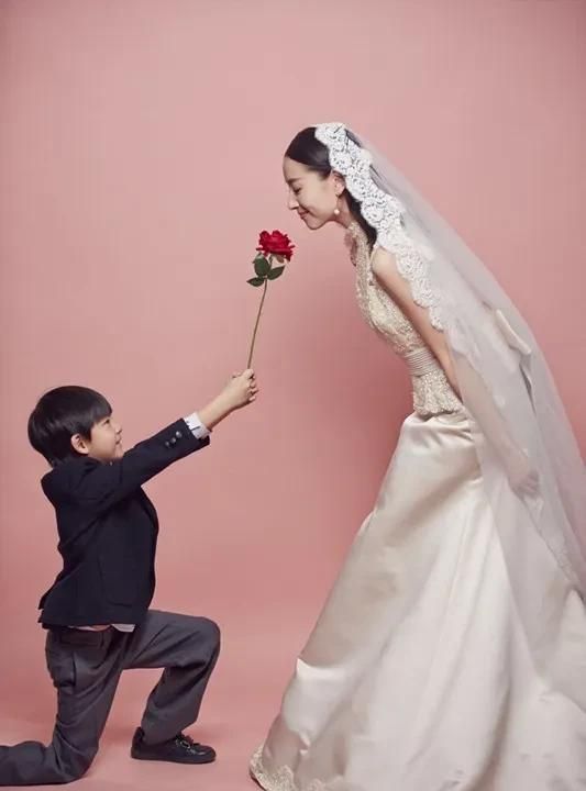 这种照片和妈妈拍,真的怎么看怎么奇怪。之前董洁和儿子顶顶也拍过类似的照片。