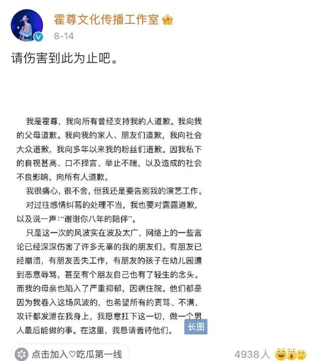 三天后,他又发长文告别演艺圈,结果网友还是在骂他。总之一句话,霍尊不管发什么,都没用。事实已经很锤了,再解释显得很多余。